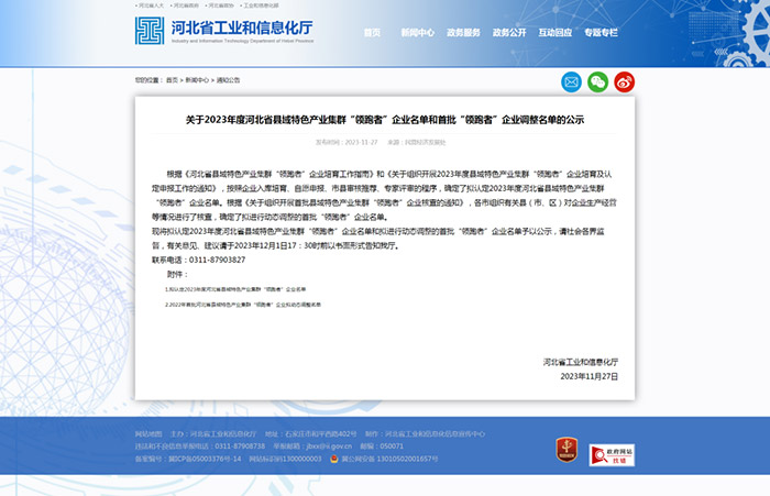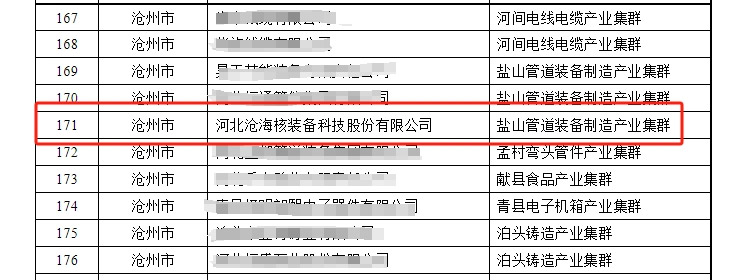近日,河北省工業(yè)和信息化廳公示了2023年度河北省縣域特色產(chǎn)業(yè)集群“領(lǐng)跑者”企業(yè)名單和首批“領(lǐng)跑者”企業(yè)調(diào)整名單。河北滄海核裝備科技股份有限公司榮幸入選其中,成為獲得這一殊榮的企業(yè)之一。