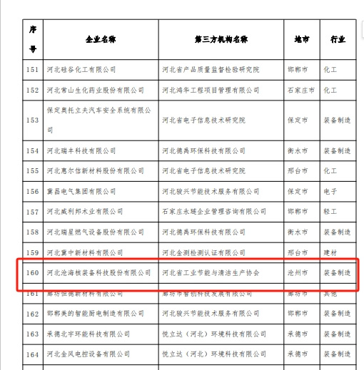 近日,河北省工業(yè)和信息化部辦公廳公布了2023年度綠色制造名單,河北滄海核裝備科技股份有限公司獲評“綠色工廠”企業(yè)。
